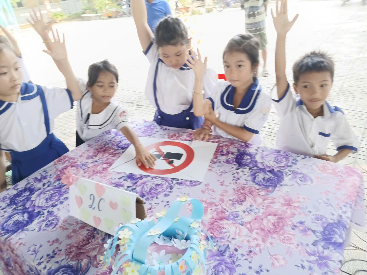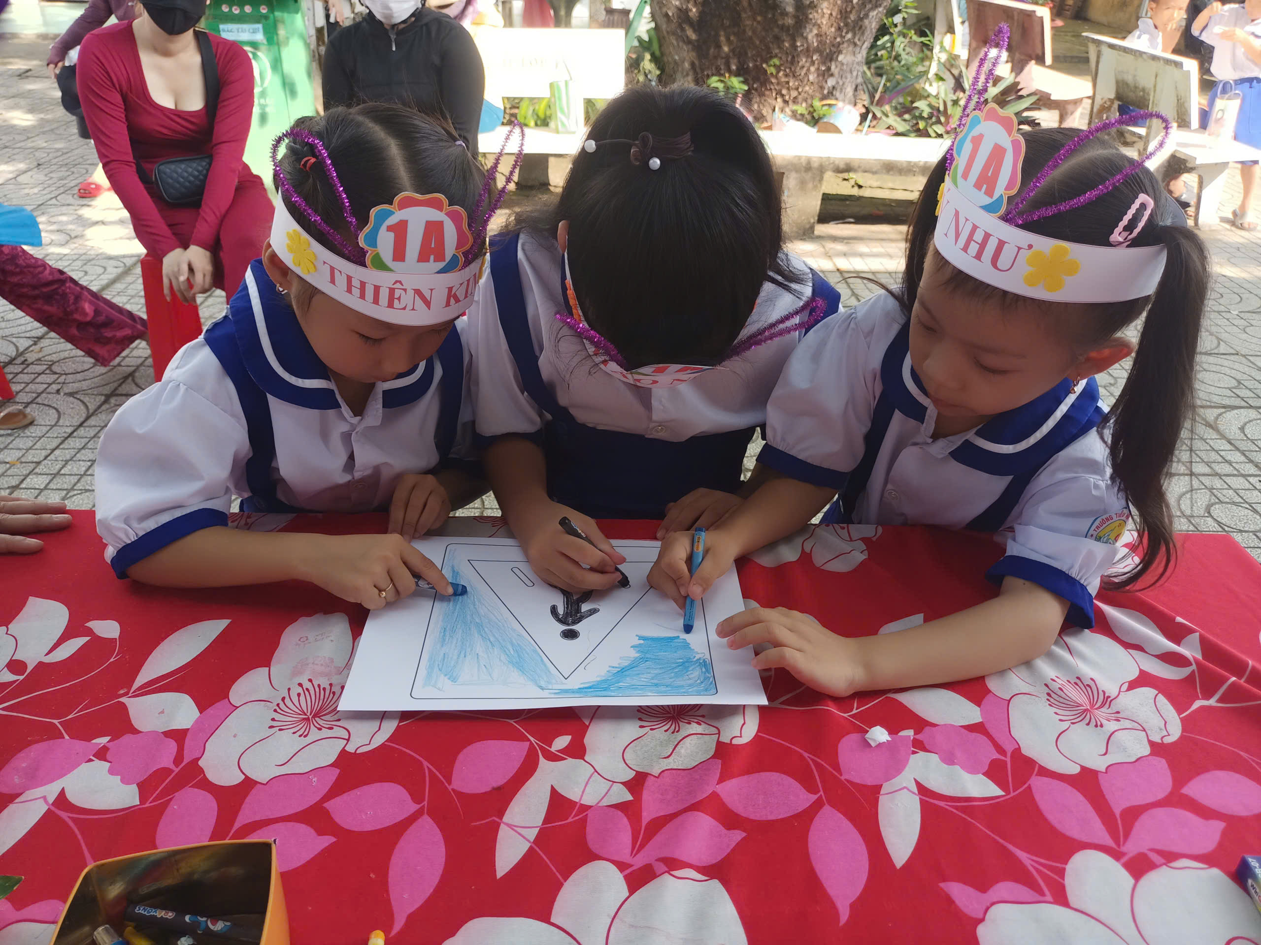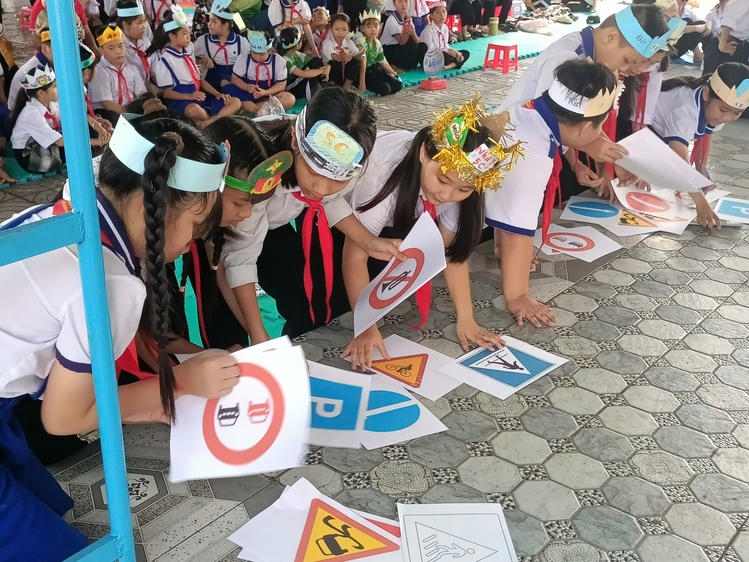 Tham gia ngày hội an toàn giao thông có 341 em học sinh và toàn thể cán bộ giáo viên của trường cùng tham gia. Các hoạt động thi đua như cắt dán biển báo – thi vẽ tranh được diễn ra rất sôi động.
