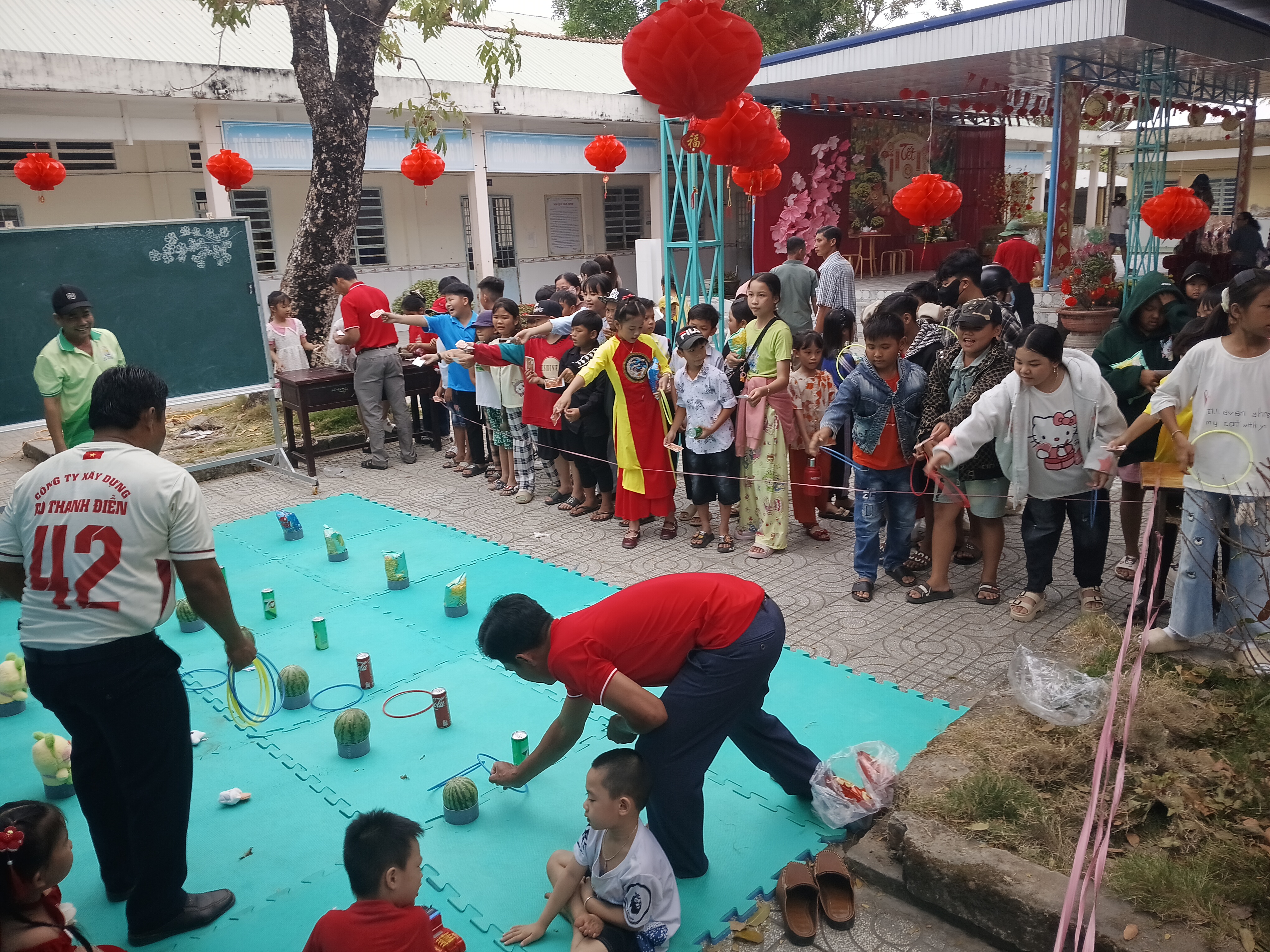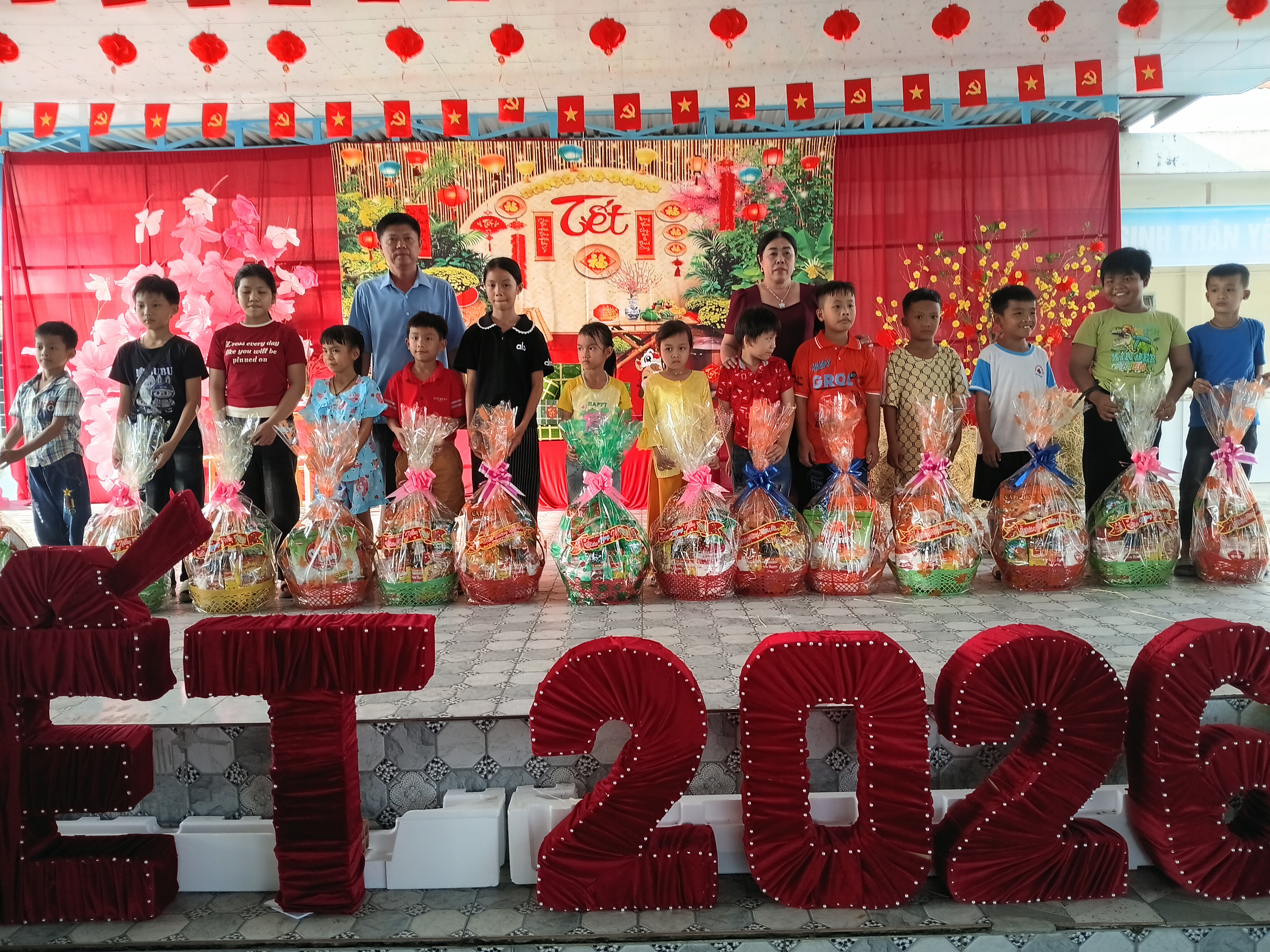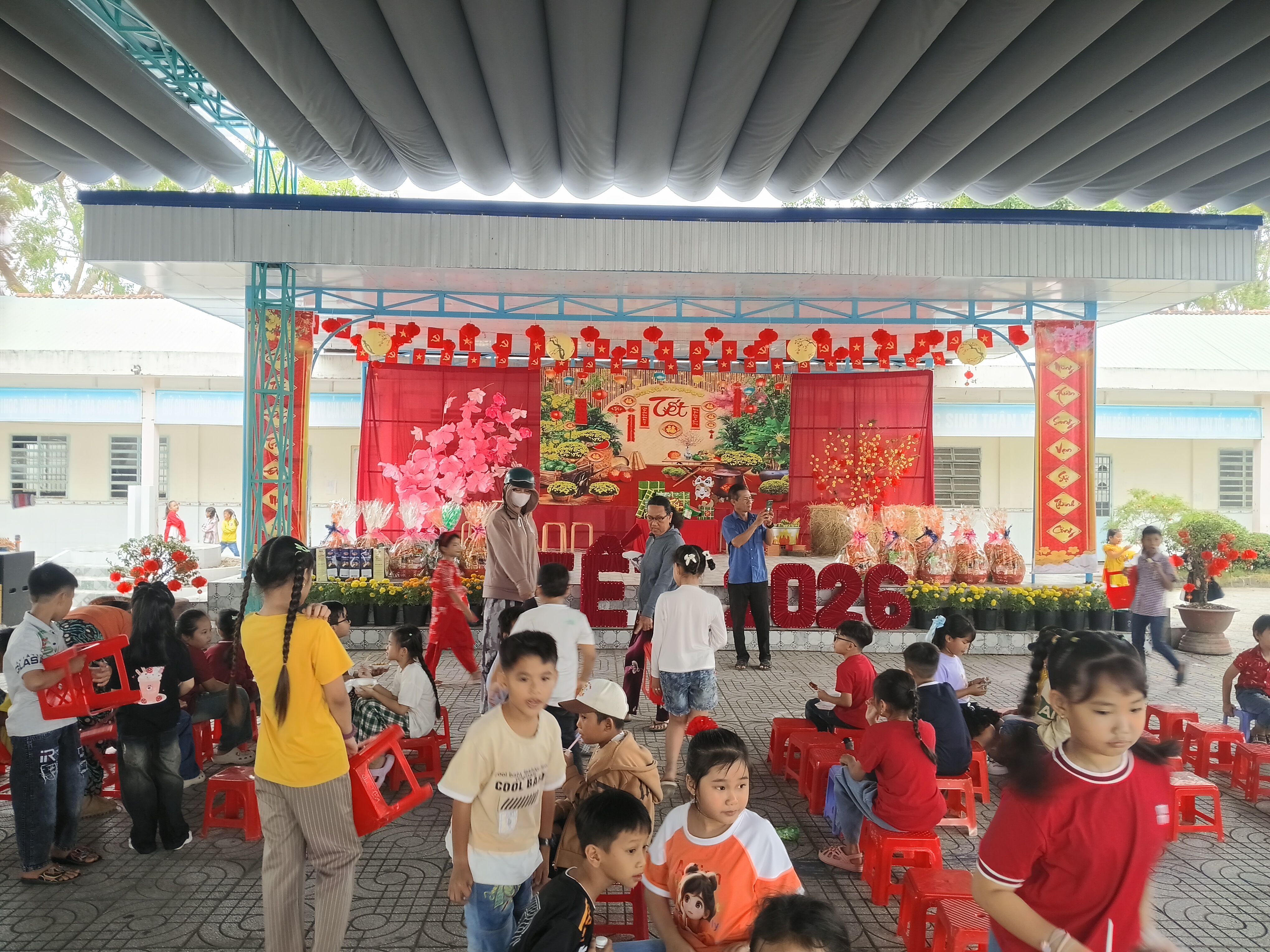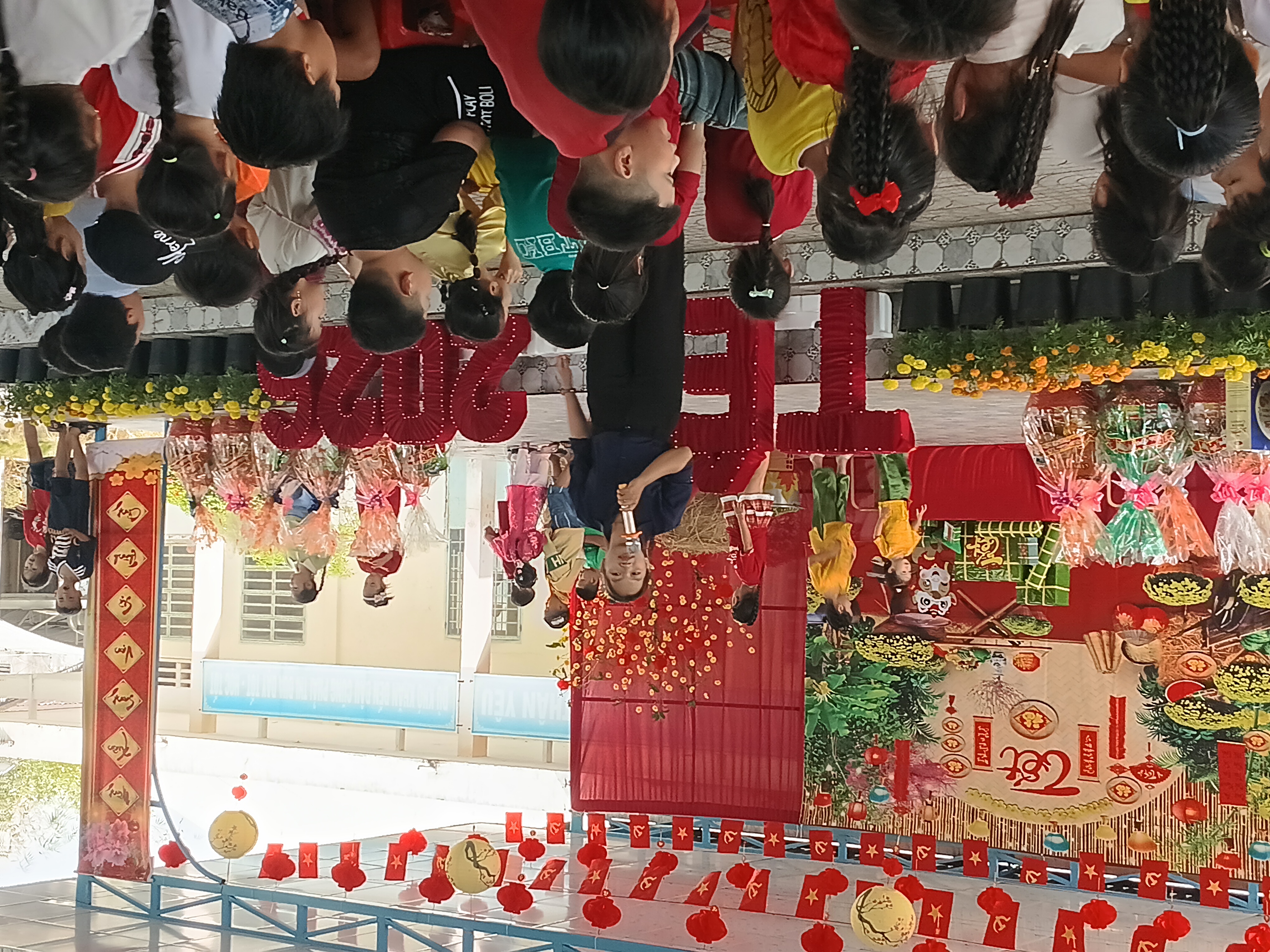 Trong bầu không khí rộn ràng chuẩn bị đón Tết cổ truyền của dân tộc, trong hơi thở ấm áp tình người, tình yêu thương, không khí mùa xuân đang rộn ràng trên mọi nẻo đường, góc xóm và khắp nơi mọi người đang hân hoan chuẩn bị đón chào xuân mới 2026. Hòa chung vào không khí vui tươi đó, sáng ngày 08/02/2026, Trường đã tổ chức các hoạt động ý nghĩa giáo dục học sinh hiểu biết về phong tục, tập quán ngày tết và tham gia các hoạt động trải nghiệm “Hội vui xuân” với nhiều hoạt động vui tươi và sinh động, thắm tình thầy trò, đồng nghiệp, như: Văn nghệ, trao quà tết cho những học sinh có hoàn cảnh khó khăn, hội chợ chia sẻ với 05 gian hàng ẩm thực của 5 khối lớp, trò chơi dân gian. Dưới đây là một số hình ảnh hoạt động trong ngày hội: