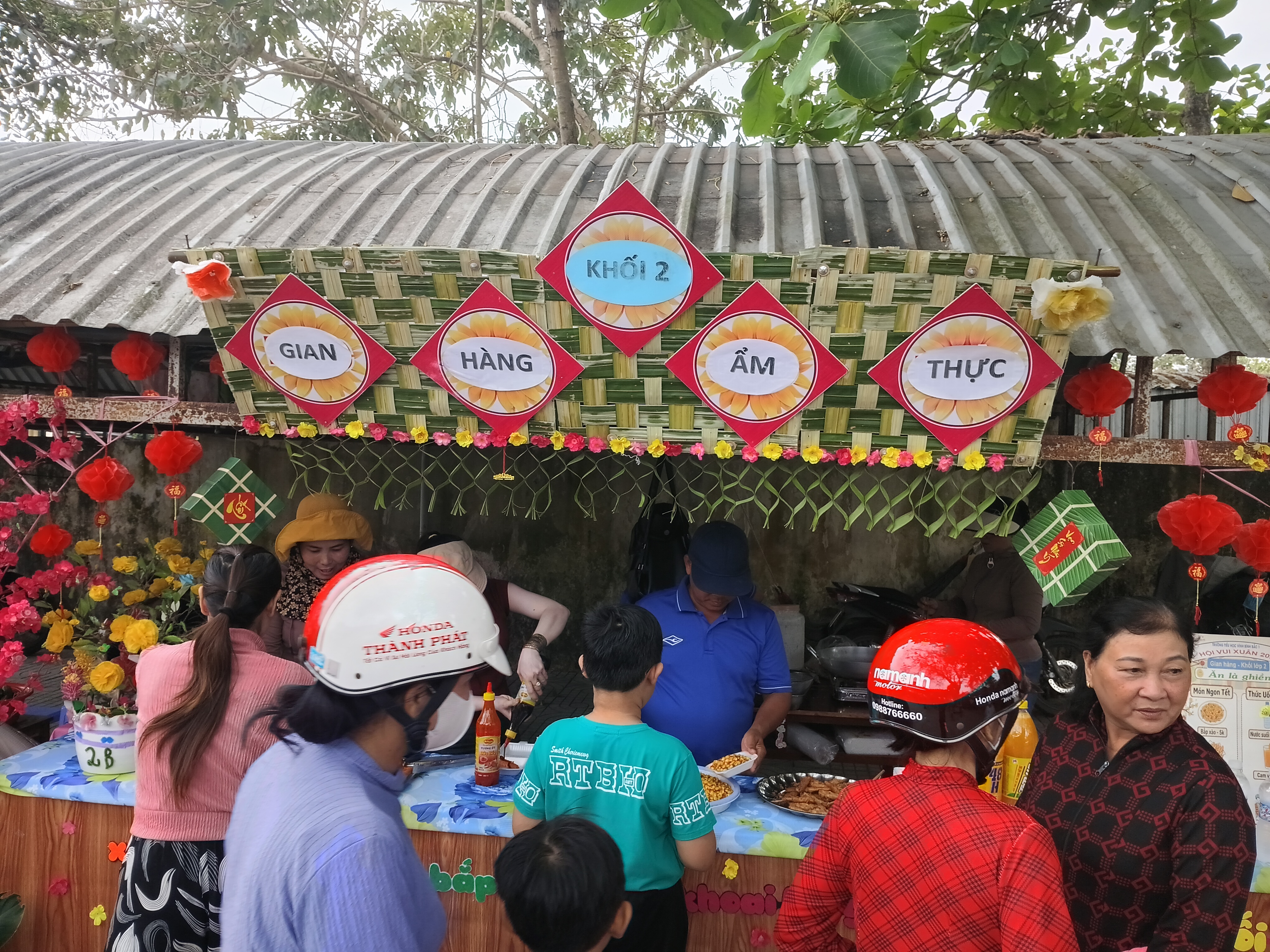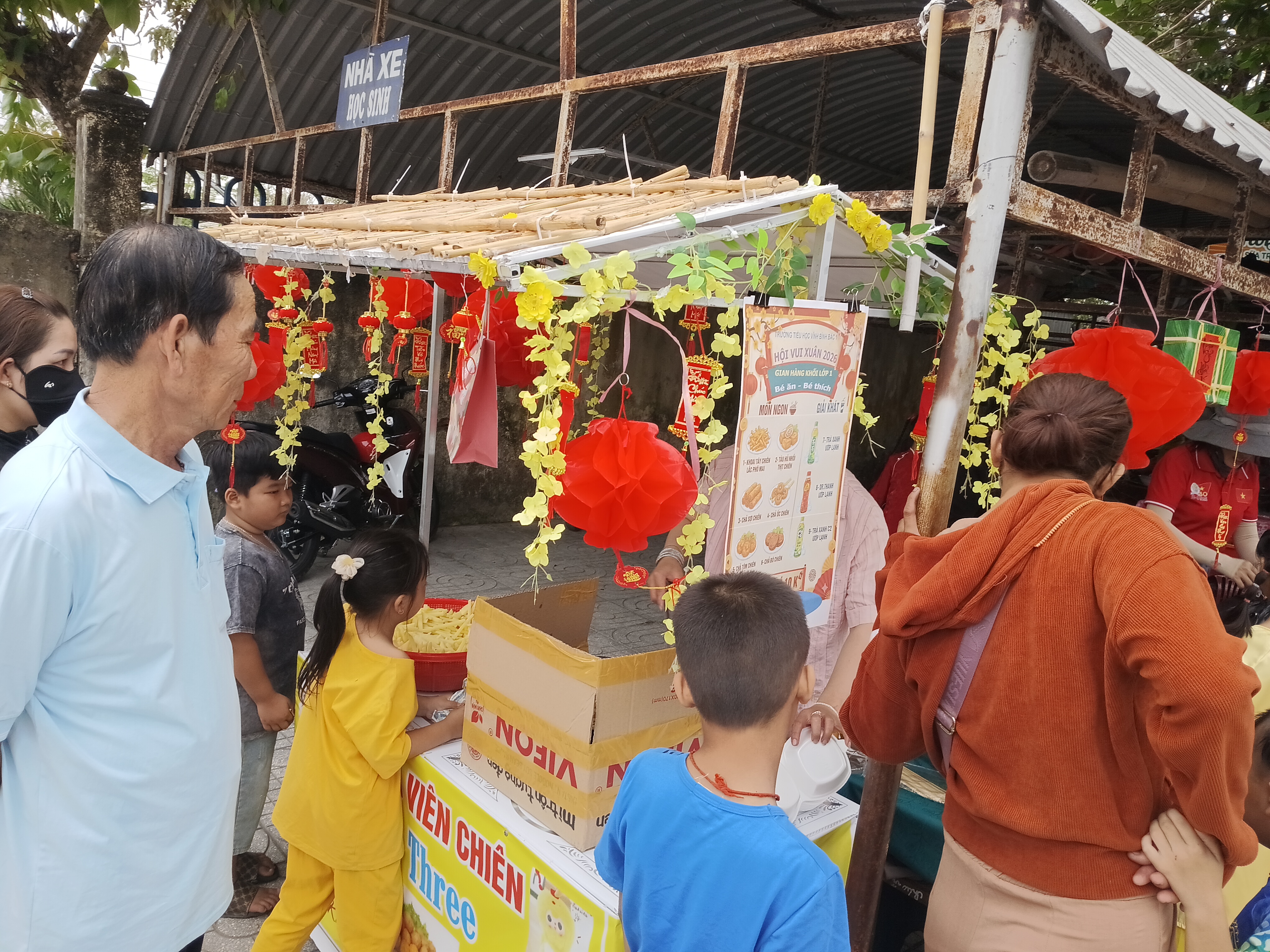 Mỗi khối lớp đã chuẩn bị một gian hàng riêng với các chủ đề đặc trưng, từ ẩm thực Tết như bánh chưng, bánh tét, mứt, kẹo, cho đến thủ công mỹ nghệ như làm lồng đèn, tranh Đông Hồ hay câu đối Tết. Các em học sinh không chỉ được tham quan mà còn tham gia trực tiếp vào quá trình bày bán, giúp các em học thêm kỹ năng giao tiếp và làm việc nhóm.