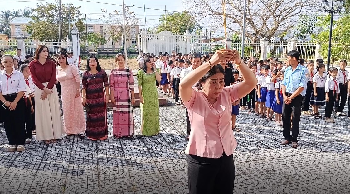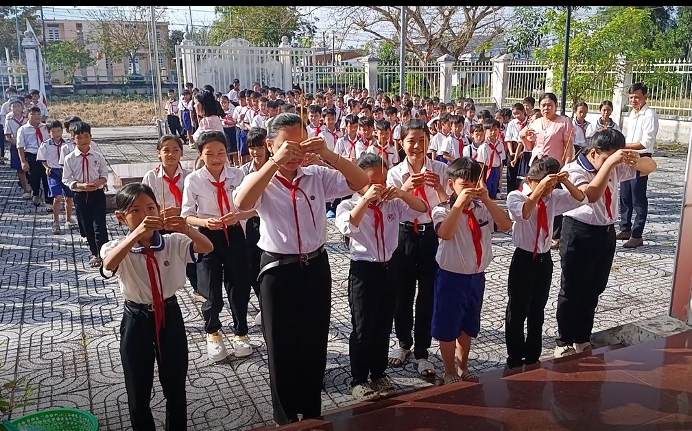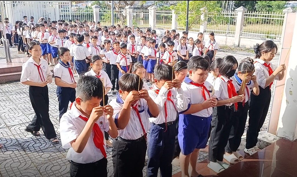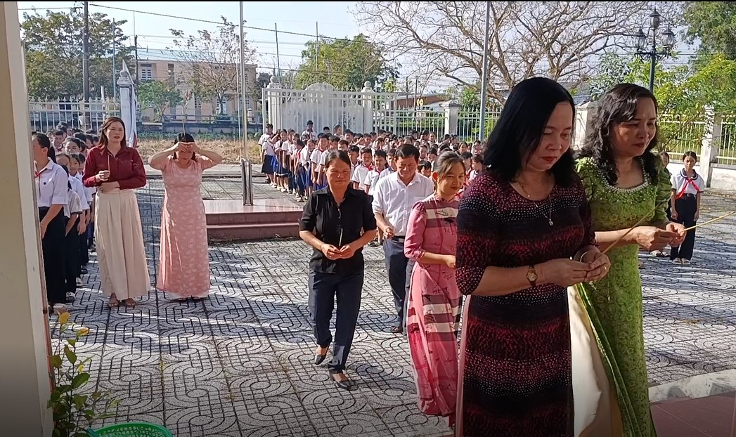 Trong không gian trang nghiêm, xúc động, các thầy cô giáo và các em học sinh đã thành kính dâng hoa, thắp nén hương thơm, bày tỏ lòng biết ơn sâu sắc đối với những chiến sĩ đã ngã xuống vì hòa bình hôm nay.